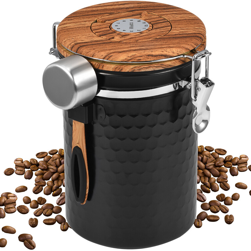 2.Perfect size: with this stainless steel tin with 2800 ml you have the possibility to store 1 kg of coffee beans and can therefore store the complete contents of a coffee packaging in this container