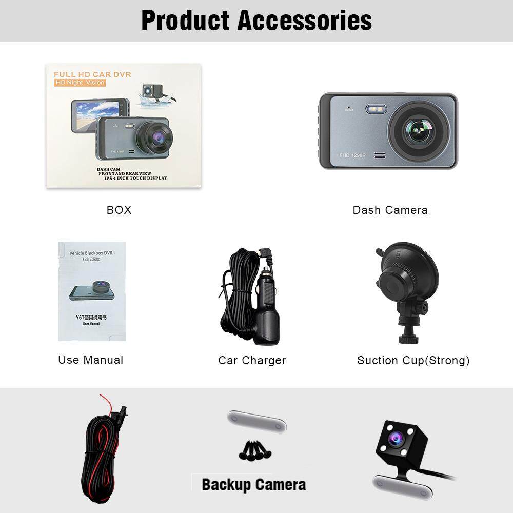 Dual Cam DVR front camera and rear camera can make a recording at the same time and have two split-view display. Full HD 1080P front camera with 140° wide-angle, and 720P rearview camera with 120° angle.
